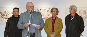 Metković, 24.3.2004. - Sinoć je u metkovskoj Galeriji GKS-a otvorena izložba radova Miroslava Šuteja koju je  organizirao Metkovski ogranak Matice Hrvatske. Radi se o 23 grafike koje je Šutej načinio na temelju svojih crteža starih gotovo pola stoljeća, još dok je bio mladi student na ALU u Zagrebu. Crteži rađeni u različitim tehnikama imaju jedan zajednički nazivnik: Šutejevo dvorište u Dugoj Resi tijekom ferija 1957. Našlo se tu sve živo i neživo što se toga ljeta zateklo u njegovu dvorištu. Dvadesetjednogodišnjakova stvaralačka groznica ne bira ni  tehniku niti motiv. Crta se grozničavo. No, kako je to objasnio Milan Bešelić, iz ovih radova proviruje 'kljun' Šutejeva izraza iz 'jajeta dvorišta'.