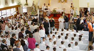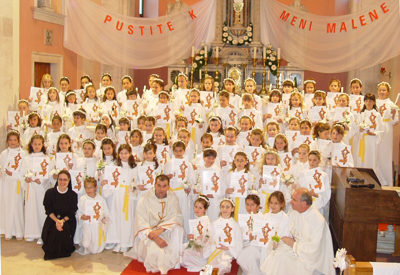 23.5.2004. - Danas je oko osamdeset prvopričesnika prvi put primilo Svetu pričest u Župi sv. Nikole. U prepunoj crkvi Sv. Misu predvodio je župnik don Ljubo Pavić uz pjevački zbor i tamburački orkestar kojega su sačinjavala djeca.