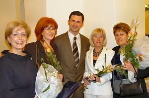 2.5.2004. - U petak je u Starogradskoj vijećnici održana promocija za oko 130 nastavnika i profesora osnovnih i srednjih škola u Hrvatskoj. Među promoviranima bile su i četiri profesorice metkovske Gimnazije. Profesorica Gordana Nikolić promovirana je u profesora mentora, a profesorice Živka Franković, Ivanka Ujdur i Lidija Puljan u profesore savjetnike. Odluke o napredovanju uručio im je Dragan Primorac, ministar znanosti, obrazovanja i športa. Ovim je još jednom potvrđena kvaliteta metkovske Gimnazije koja ove godine slavi pedesetu obljetnicu osnutka.