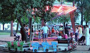 18.7.2004. - U gradskome parku je već danas bilo živo. Neki od metkovskih mališana su se prvi put zavrtili na "ringišpilu" pod budnim okom svojih roditelja. Za one malo strašljivije tu je vlakić koji juri brzinom od 5 km na sat.