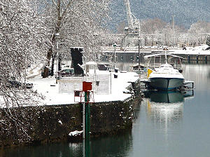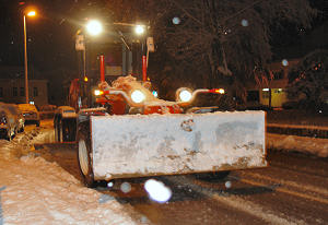 28.1.2005. - Kako je danas dopodne bilo lijepo vrijeme radnici Komunalnoga poduzeća čistili su nogostupe od ugažena snijega i leda te ih posipali drobljenim kamenom, međutim nešto prije 15 sati počeo je padati gust snijeg koji se zbog niske temperature hvata za tlo. Čuvajte se pri prolasku ispod stabala na kojima se stari snijeg noćas smrznuo pa služi kao dobra podloga za novi.