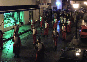 25.3.2005. - Unatoč kiši koja je danas padala gotovo cijeli dan u procesiji na Veliki petak sudjelovalo je nekoliko tisuća vjernika. Procesija se tradicionalno održava nakon Mise u crkvi Sv. Ilije i prolazi starim dijelom Metkovića uz sudjelovanje žudija i Šimuna koji bosonog na leđima nosi teški križ. Procesija je završila ponovno u crkvi gdje se nastavilo s pjevanjem pučkih napjeva među kojima je najpoznatiji "Prosti, Gospodine" kojega je klečeći otpjevao Stipo Pipinić, dugogodišnji solist u crkvenome zboru. Za sve one koji nisu mogli danas biti u Metkoviću donosimo malu fotoreportažu.