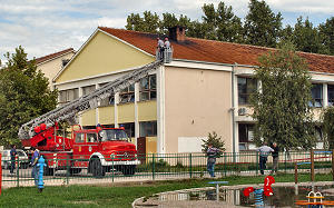 20.9.2005. - Od subote na večer do ponedjeljka ujutro na području Metkovića palo je ukupno 90 litara kiše po metru četvornom. Najviše je palo u ranim satima ponedjeljka, čak 40 litara. Unatoč tome nije bilo većih problema pa su vatrogasci JVP Metković intervenirali samo na nekoliko mjesta ispumpavajući vodu iz podrumskih prostora ili, kao što se vidi na slici, čisteći od lišća oluk na zgradi Srednje škole Metković.