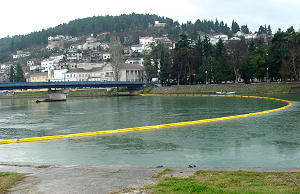 27.2.2006. - Ekipa Pomorskog servisa Luke Ploče kasno sinoć je ispod mosta u Metkoviću započela postavljanje zaštitnih plutajućih brana koje bi trebale zaustaviti daljnje širenje uljne mrlje koja bi noćas mogla doći do Metkovića.