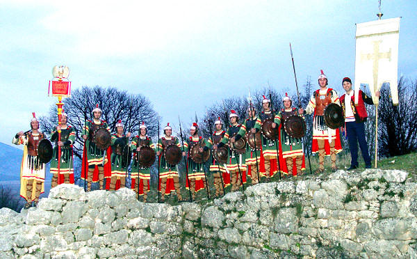 6.2.2006. - Nakon šesnaest stoljeća rimski vojnici ponovno su osvanuli na naronitanskim zidinama. Riječ je o žudijama ili žudijima, kako sebe nazivaju, iz Vodica čija odora i oprema prilično vjerno oponaša onu rimskih legionara.