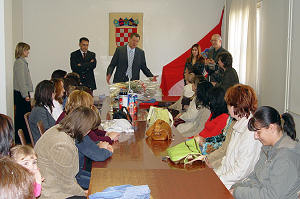 Metković, 31.3.2006. - Jučer je u dvorani zgrade Državne uprave u Metkoviću metkovski gradonačelnik Stipo Gabrić Jambo uručio darove za 46-tero djece od ukupno 94 preostala zahtjeva za prošlu godinu.