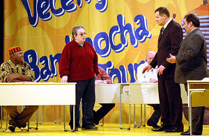 Metković, 28.3.2006. - U sklopu velike turneje po Hrvatskoj polaznici "Večernje škole" posjetili su i Metković. U Športskoj dvorani Metković petorka je, u jednom trenutku pojačana i sa metkovskim gradonačelnikom Stipom Gabrićem Jambom, sat i pol nasmijavala oko tisuću petsto posjetitelja.
