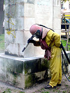 12.5.2006. - Jučer je u Gradskom parku tehnikom pjeskarenja očišćen spomenik poginulima u Drugom svjetskom ratu. Pedesetak godina star spomenik bio je u dosta lošem stanju i dodatno išaran grafitima. Radove je po narudžbi Gradskog poglavarstva izveo obrtnik Joško Nikolić.