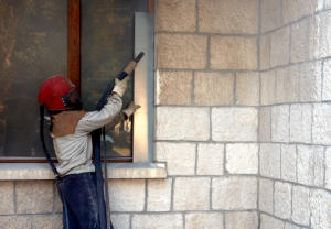 30.9.2006. - Danas je započelo pjeskarenje kamene fasade jedne od najreprezentativnijih građevina u Metkoviću. U prvoj fazi očistit će se dio fasade oko ulaza koji je najviše potamnjeo.