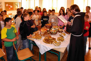 Metković, 12.10.2006. - Nizom recitacija, igrokaza i pjesama jučer je u OŠ Stjepana Radića u Metkoviću proslavljen Dan kruha. Kao i svake godine stolovi su bili prepuni raznih vrsta kruha, peciva i kolača.