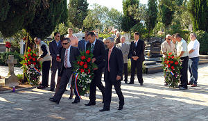 Metković, 9.10.2006. - Povodom Dana neovisnosti predstavnici Gradskog vijeća i Gradskog poglavarstva grada Metkovića te predstavnici udruga branitelja proizašlih iz Domovinskog rata i Udruge roditelja i udovica poginulih branitelja u Domovinskom ratu grada Metkovića položili su vijence i zapalili svijeće na centralnom križu na Gradskom groblju Sv. Ivana gdje je za sve poginule održan kratki obred koji je vodio fra. Dušan Džimbeg, župnik iz župe Sv. Ilije. Vijenci su položeni i na Trgu kralja Tomislava ispred spomenika poginulim braniteljima.