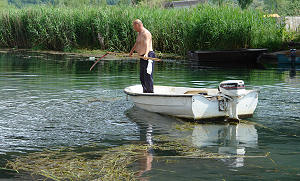 Vid, 7.5.2007. - Da i rijeku treba kositi potvrđuje ova fotografija sa Norina u Vidu. Kako se izrasle riječne trave ne bi uplitale u propelere vanbrodskih motora na lađama plovni put Norinom treba povremeno održavati podvodnom košnjom.