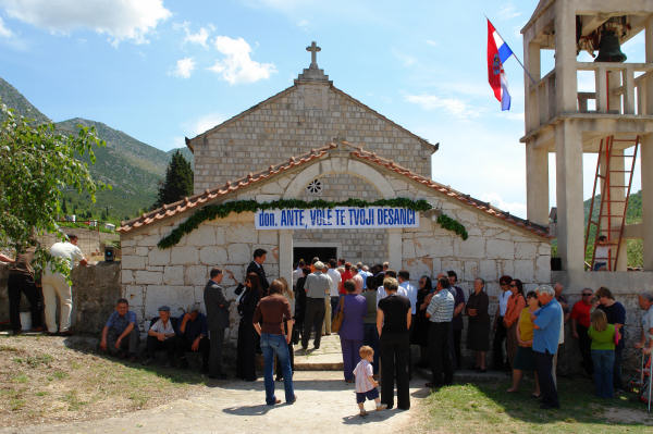 Metković, 17.5.2007. - Velikim slavljem u Desnama, prvom mjestu svog svećeničkog djelovanja, splitsko-makarski nadbiskup u miru msgr. Ante Jurić, proslavio je svoj 85. rođendan i 60 godina svećeničkog djelovanja.
