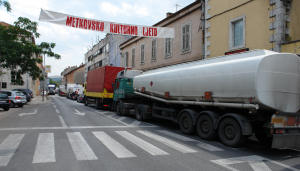 Metković, 10.8.2007. - Na graničnom prijelazu Doljani, udaljenom od središta grada 2,5 km, ovih dana vladaju velike gužve. Kolone automobila, autocisterni i tegljača nerijetko se produlje do samoga središta otežavajući gradski promet pa intervenira prometna policija.