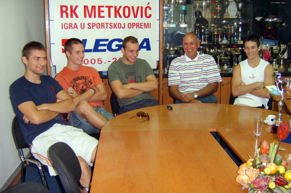Metković, 7.8.2007. - Povodom osvajanja srebrnog odličja na Svjetskom rukometnom prvenstvu za kadete u Bahreinu, četvoricu metkovskih reprezentativca, igrača RK Metković, primili su metkovski gradonačelnik Stipo Gabrić Jambo i predsjednik RK Metković Slobodan Batinović Orbo.