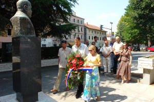 Metković, 8.8.2007. - Članovi HSS-a iz Metkovića danas su polaganjem vijenca na spomenik Stjepanu Radiću pred metkovskim GKS-om obilježili sedamdeset devetu obljetnicu smrti toga velikog hrvatskog političara i osnivača HSS-a.