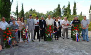 Metković, 5.8.2007. - Današnjom misom u crkvi Sv. Ilije te polaganjem vijenaca na središnji križ na Groblju sv. Ivana i na Spomenik poginulima u Domovinskome ratu obilježen je 5. kolovoza Dan pobjede i domovinske zahvalnosti. Odrješenje za poginule molio je fra Daniel Stipanović, a vijence su položili predstavnici Grada na čelu s gradonačelnikom Gabrićem, udruga proizašlih iz Domovinskoga rata te HDZ-a.
