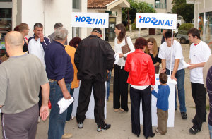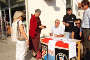 5.10.2007. - Članovi HSP-a iz Metkovića i Slivna danas su na križanju ulica Ante Starčevića i Matice hrvatske započeli s prikupljanjem potpisa za peticiju kojom se traži raspisivanje referenduma o suspenziji Ustavnog zakona o suradnji s Haškim sudom i zamrzavanje te suradnje. HSP namjerava skupiti 400 tisuća potpisa i peticiju uputiti u saborsku proceduru do kraja ovoga mandata kako bi na dnevni red došla već početkom sljedećega.