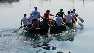 19.6.2008. - Metković nema jaku veslačku momčad na Maratonu lađa, ali zato veslački šport u gradu traje već desetljećima, uz sve probleme koji prate takav nepofitabilan šport. Veslači VK Neretvanski gusar za vrijeme treninga.
