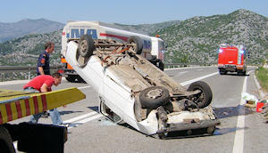 22.6.2008. - U subotu se, na području koje pokriva PP Metković, dogodila još jedna prometna nesreća. I ovaj put, na sreću, bez smrtnih posljedica. Na početku uspona na Rabu D. J. (68) iz Ploča, upravljajući osobnim automobilom marke Volkswagen, najvjerojatnije zbog umora, izgubio je nadzor nad vozilom i udario u brdo nakon čega se vozilo okrenulo na krov. Prva pomoć pružena mu je u metkovskom Domu zdravlja otkud je prevezen u OB Dubrovnik.