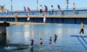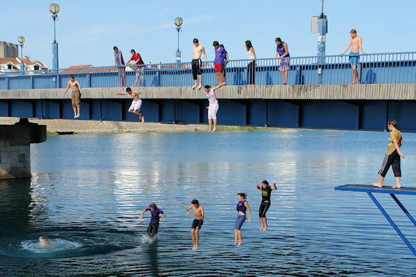 21.6.2008. - Metkovski osmaši, a za koji dan prvaši, ponovno su zadnji dan nastave otvorili sezonu kupanja kod mosta na Neretvi. Kolika je bila temperatura vode ne znamo, ali pretpostavljamo da je bila upola niža od temperature zraka. Svojevrstan ispit hrabrosti mnogi su polagali skokovima s mosta. Jedino što se promijenilo je to da su nekada momci na taj način željeli ostaviti dojam pred curama. Danas su im one po mnogočemu ravnopravne.