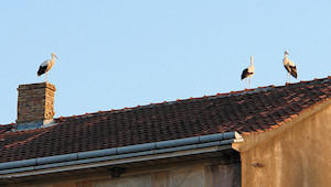 22.8.2008. - Svi koji su jutros poslom morali preko Lučkoga mosta mogli su vidjeti zanimljiv prizor. Tri rode na putu prema Africi zastale su na krovu obližnje zgrade s visine promatrajući jutarnju gužvu na mostu.