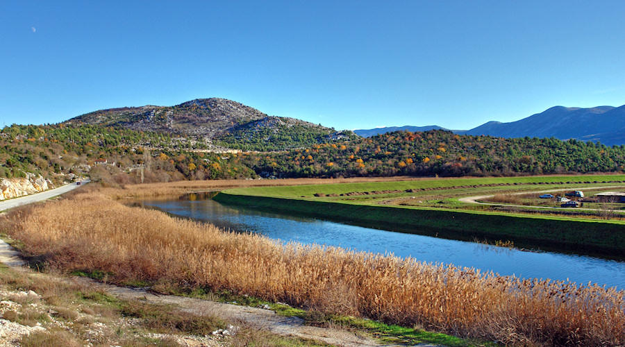 Metković, 7.12.2008. - Nakon nekoliko tmurnih i kišnih dana nedjelja je osvanula sunčana. Iako meteorolozi predviđaju još dva ovako lijepa dana mi smo odlučili ne čekati i uhvatiti posljednje boje zlatne jeseni. Gornja slika prikazuje bajer uz cestu na Repu.