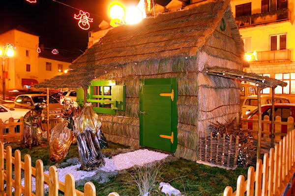 Metković, 22.12.2008. - Danas su na Trgu kralja Tomislava postavljene velike jaslice koje je na inicijativu gradonačelnika Gabrića izradio ravnatelj Dječjeg centra prof. Ivica Gabrić sa suradnicima. Jaslice su izrađene u stilu tradicionalne neretvanske kućice od šaša ispred koje su postavljene velike figure.