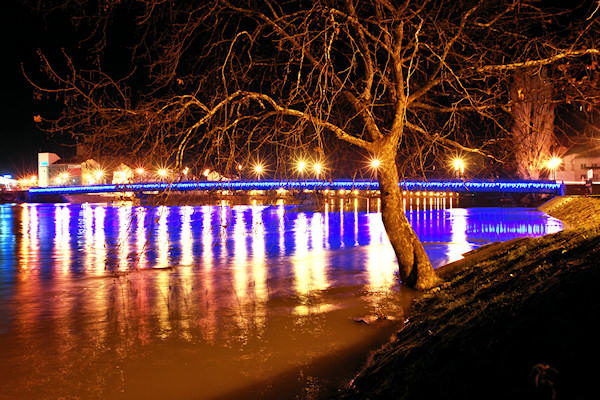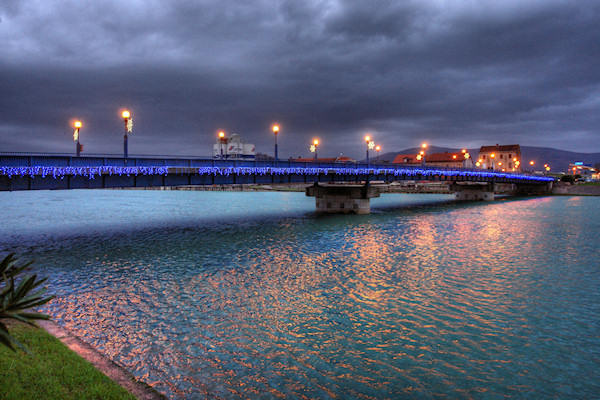 Metković, 11.12.2008. - Nakon što su u dva navrata ukrasna svjetla na Lučkom mostu bila pokidana, večeras je on ponovno zasvijetlio cijelom dužinom. Možda bi trebalo saznati tko uporno kida svjetleće ukrase.