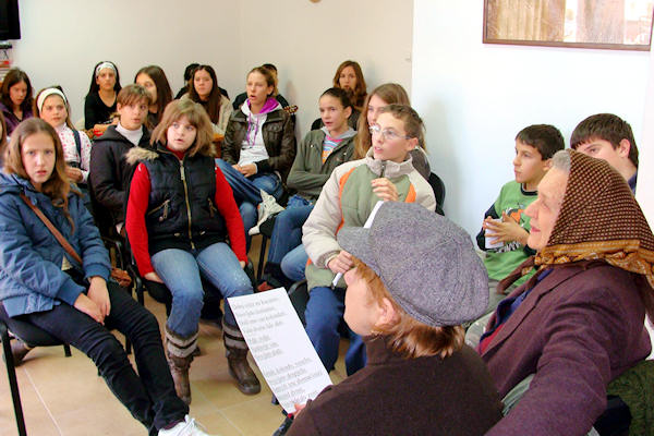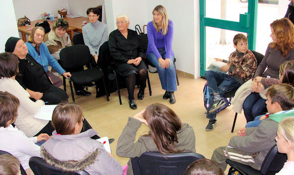 Metković, 11.12.2008. - U Dnevnom boravku Udruge Otac Ante Gabrić jučer su se učenici 4e razreda OŠ Stjepana Radića i njihova učiteljica Anika Raič družili sa starijim osobama, korisnicima Boravka.