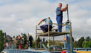 25.4.2009. - Djelatnicu tvrtke 'Unelpo' započeli su s postavljanjem nove rasvjete na Lučki most.