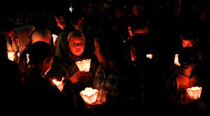 10.4.2009. - Večeras su u metkovskim župama održani obredi Velikoga petka s procesijama u kojima je sudjelovalo između šest i sedam tisuća vjernika. Sutra donosimo cjelovitu reportažu, a do tada objavljujemo ovu fotografiju snimljenu ispred crkve Sv. Nikole u Metkoviću.