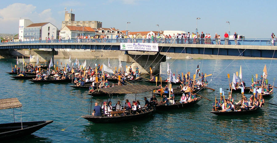 25.5.2009. - 25. smotra folklora Na Neretvu misečina pala službeno svečano je otvorena u subotu poslijepodne priredbom na Neretvi koja se mogla pratiti i u izravnom televizijskom prijenosu. Tijekom priredbe žene iz Rogotina demonstrirale su lancanje lađe, a prikazano je i tradicionalno korištenje lađe i trupe.