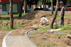 21.5.2009. - U tijeku su radovi na uređenju sporednih staza u Gradskome parku koje se popločuju granitnim kockama.