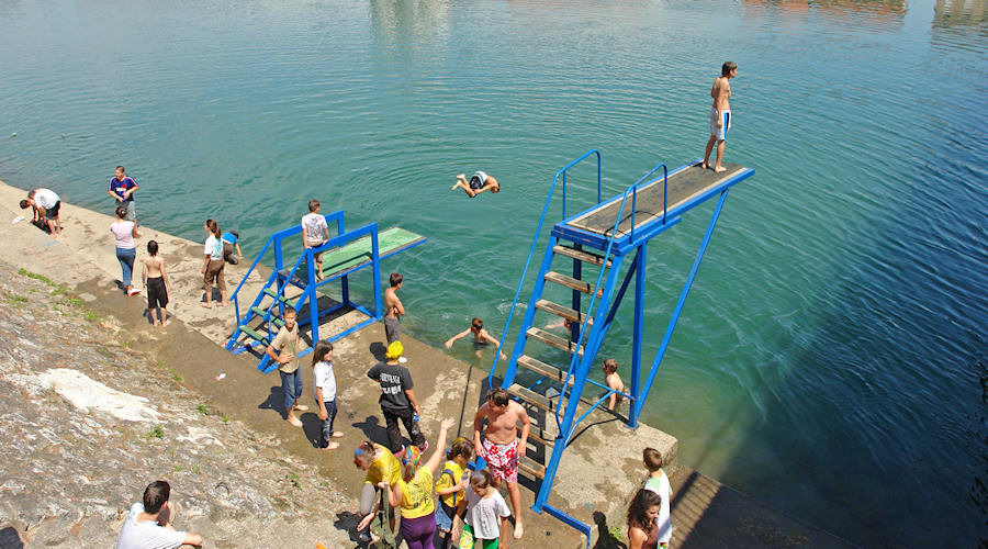 10.6.2009. - Kraj nastavne godine metkovski četvrtaši i osmaši odnedavna su počeli obilježavati zajedničkim kupanjem u Neretvi. Tako smo danas kod Lučkoga mosta u kupanju zatekli skupinu četvrtaša koji su smjelo skakali u Neretvu čija je temperatura jutros u sedam sati bila tek 13,5oC pa ta zabava, koliko god bila simpatična, nije baš neopasna.