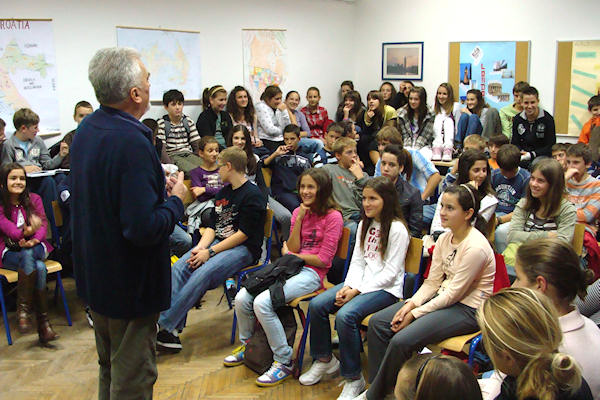 14.10.2009. - Jučer je u OŠ Stjepana Radića održan književni susret s književnikom Šimom Storićem kojemu su nazočili učenici od 4. do 7. razreda, uzrasta kojemu se Storić najčešće obraća u svojim knjigama za mladež.