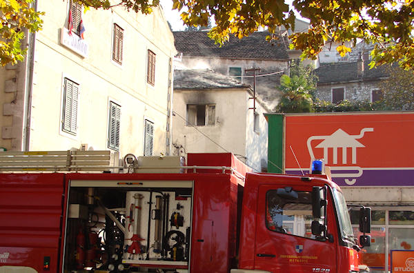 26.10.2009. - Danas u poslijepodnevnim satima došlo je do požara na dvokatnici u Ulici Stjepana Radića u samom središtu grada.