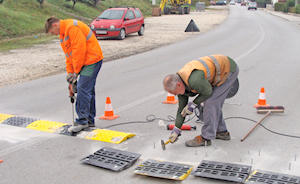 Metković, 24.11.2009. - Danas su u gradu na tri mjesta postavljeni tzv. ležeći policajci kojima će se pokušati obuzdati oni koji zaborave da voze gradskom ulicom.
