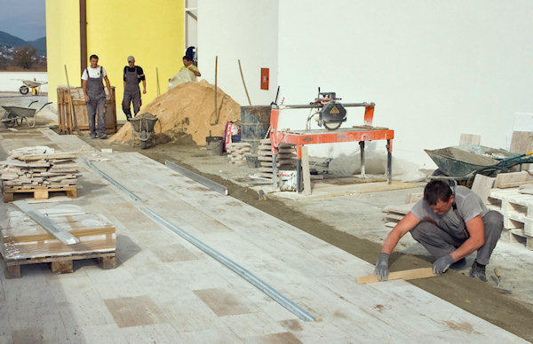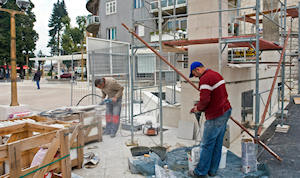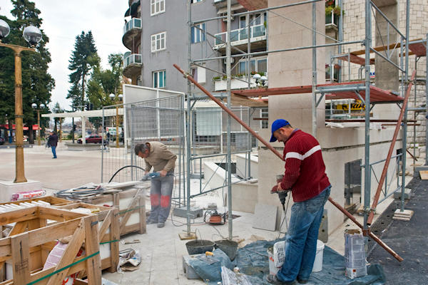 Metković, 24.11.2009. - Na Trg kralja Tomislava ponovno su se vratili majstori. Ovaj put dovršava se fontana, a djelatnici Komunalnoga poduzeća u arle su nasuli zemlju u koju će biti zasađene penjačice za pergole.