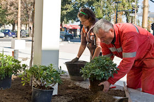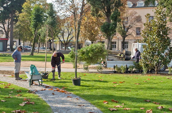 Metković, 25.11.2009. - Kako se ovih dana užurbano radi u parku i na trgu svaki dan vidi se nešto novo. Danas su u arle na trgu posađene bijele glicinije, a oko njih ukrasno grmlje i cvijeće.