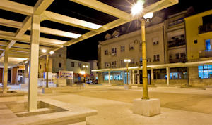 Metković, 14.11.2009. - Sinoć je južni dio Trga kralja Tomislava zasjao pod novom rasvjetom. Iako još nije do kraja obnovljen (čeka se na majstore za uređenje fontane) osvjetljenjem je dobio novu dimenziju. Nadamo se da će jednoga dana, kad bude više novaca stari kandelabri biti zamijenjeni primjerenijima novome izgledu trga. Uskoro će na njega i božićni ukrasi te jaslice koje su prošloga Božića oduševile mnogu djecu.