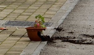 Metković, 30.11.2009. - Samo ludom srećom Metković se danas nije našao u prvim minutama dnevnih vijesti. Jako jugo jednostavno je otpuhalo pitar s balkona zgrade u Ulici kralja Zvonimira koji je završio na nogostupu kojim se, inače, kreće mnoštvo građana, među kojima i školske djece.