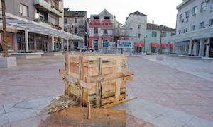 Metković, 26.11.2009. - Zaboravljena riječ vratit će se u Metković i to na Trg kralja Tomislava na kojem se radi postolje za jarbol na kojem će se vijoriti zastava, stijeg, barjak ili pak korugva koju smo pokupili iz avarskoga još u vrijeme kada smo s njima (Avarima) imali premijerni nastup na Balkanu.