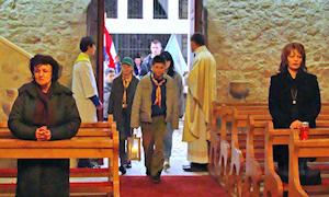 Metković, 14.12.2009. - Predstavnici Odreda izviđača poriječana Ivica Prusac Juma danas su donijeli iz Zagreba u Dubrovačko-neretvansku županiju Svijetlo mira koje je jutros bilo zapaljeno na misi u zagrebačkoj katedrali, a već u 15 sati i u crkvi Gospe Karmelske na Bagalovićima.