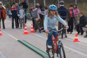 Metković, 16.12.2009. - Na poligonu Autoškole Žabac 12. prosinca zatekli smo skupinu djece na biciklima kako pod punom opremom, koja naravno uključuje i biciklističku kacigu, uvježbava vožnju biciklom sukladno propisima u cestovnom prometu. To uključuje i vožnju kroz različite prepreke koje mali biciklisti moraju savladati.