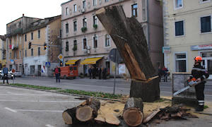 Metković, 11.12.2009. - Stogodišnji brijest kraj parka uz državnu cestu D9 trebalo je ukloniti jer su njegove šuplje grane predstavljale opasnost za prolaznike i vozila. Radove su obavili metkovski vatrogasci.