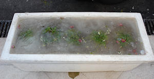 Metković, 21.12.2009. - Kako je bilo i najavljeno prošle noći Metković je bio u debelome minusu, što se vidi po smrznutome cvijeću u arli na trgu. Prvoga službenoga dana zime najniža temperatura kretala se između minus 6 i minus 7 stupnjeva Celzijusa, a tek u jedanaest sati zabilježena je nula.