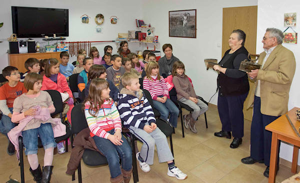 Metković, 16.12.2009. - U sklopu projekta U neretvanskoj lađi u Dnevnom boravku Udruge Otac Ante Gabrić upriličeno je druženje s učenicima 2C razreda OŠ Stjepana Radića i njihovom učiteljicom Ivonom Vuicom. Tijekom druženja razgovaralo se o igrama, običajima i zagonetkama, o tome kako su živjeli naši stari te koji su se predmeti koristili u svakodnevnom životu.