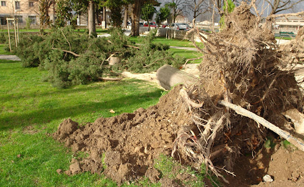Metković, 23.12.2009. - Olujno jugo noćas je u Gradskom parku iz korijena izvalilo stari čempres visok oko 25 m.