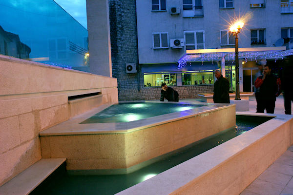 Pred večer je probno u rad puštena fontana na obnovljenom južnom dijelu Trga kralja Tomislava što je privuklo mnoge građane.
